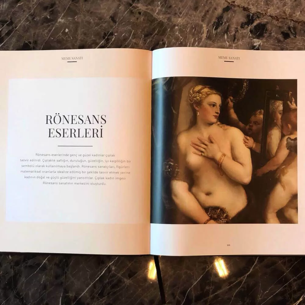 Meme Sanatı, insan memesinin yapısal özellikleri, coğrafik etkileri, tarihsel süreç, heykel ve resim sanatına göre işlenişi hakkında estetik açıdan bilgi vermeyi hedefleyen bir kitaptır.